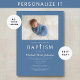 The quality of the paper was great. The only thing I didn’t realize until too late was the template never had a time for the baptism. And so I never added my own in as I was just following the template. Other then that the design is beautiful and turned out exactly how we wanted. Printing was crisp, easy to read and looked great.