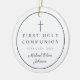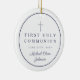 Blue Photo Religious Cross Boy First Communion Ceramic Ornament