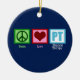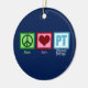 Peace Love Physical Therapy ornament in blue. Cute physical therapist gift. Peace love and physical therapy on dark blue background.