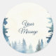 This elegant holiday sticker showcases a circle of watercolor blue pine trees framing your personal message, evoking a serene winter woodland scene. The snowy and icy design captures the essence of a peaceful, cold-weather landscape, adding a calming and festive touch. Perfect for seasonal greetings, party accents, or holiday embellishments, it brings charming beauty to any winter celebration.