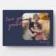 A heartfelt, minimalistic 1-photo holiday gift photo plaque with vintage vibes in pink and blue your custom message in a fun, casual script font. Personalize with your photo, name, year and message of your choice. The colour palette is a fresh mix of pink and deep blue, adding a modern twist to traditional holiday hues. Makes a great gift for grandparents, aunts, uncles and other special people in your life. Part of a collection from Parcel Studios.