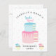 A cute budget gender reveal invitation. On the front the typography text reads The Couple's names, Gender Reveal, homemade with love. The Gender Reveal text is enclosed within a cake topper, on a cake made of two tiers in blue and pink. The homemade with love text is flanked by two cupcakes in blue and pink, on a background of blue and pink cake sprinkles. Personalise by adding your event details to the back.