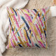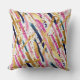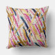 Blue Pink Gold Paint Stripes Abstract Pattern Throw Pillow