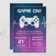 Blue Pink Gradient Video Gamer Gaming Kid Birthday Invitation
