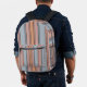 Blue Pink Grey Colour Block Vertical Stripes Printed Backpack