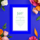 Modern simplistic wedding invitation in accents of blue, pink, orange, and green customizable to your event specifics.