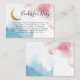 Dreamy boy and girl baby shower book request card featuring watercolor texture in blue and pink on the back with faux gold glitter moon and stars. The card asks guests to bring in a new or used children's book instead of a card.