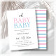 Celebrate the arrival of twin babies with this stylish and contemporary baby shower invitation. The design features a clean white background with elegant pink and blue lettering that reads "Oh Baby Baby." The reverse side is adorned with alternating pink, blue, and white stripes, adding a whimsical touch to the overall look. This invitation is fully customizable, making it easy to add your personalized details and create a unique and memorable invitation for the special occasion.