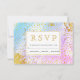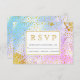 Blue and pink watercolor, gold foil confetti and specks wedding RSVP response card.