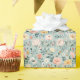 Pretty bridal shower or birthday wrapping paper for her with the following colours of flowers on a light blue background, pink flowers, white flowers, peach flowers.