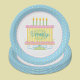 Blue Pink Yellow 5th Birthday Name Cake Paper Plate