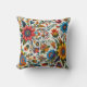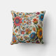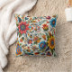 Blue Pink Yellow Embroidery Style Flowers Floral Throw Pillow