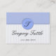 Pretty light blue pinstripe card with a monogram area in the circle like seal. Customize with your child's name and contact number to personalize just for him or her.