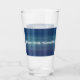 This glass has a blue plaid background both on the front and the back of the drinking glass design