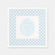 Party paper napkin is shown in the white cocktail size with a cute powder blue and white plaid Easter egg print.