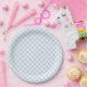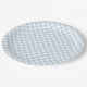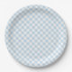 Party paper plate is shown in a cute powder blue and white plaid print.