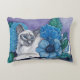 Original watercolor painting by Sandra Gale, featuring a blue point Siamese cat, surrounded by blue flowers on a pale purple background. Flowers are blue hydrangea, and blue poppies. Great design for cat lovers and those who especially like the Siamese breed. Perfect for bedroom wall art or framed with matching image. Matching watercolor painting of a chocolate point Siamese also available in my EverIrisPrints store.