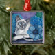 Original watercolor painting by Sandra Gale, featuring a blue point Siamese cat, surrounded by blue flowers on a pale purple background. Flowers are blue hydrangea, and blue poppies. Great design for cat lovers and those who especially like the Siamese breed. Perfect for bedroom wall art or framed with matching image. Matching watercolor painting of a chocolate point Siamese also available in my EverIrisPrints store.
