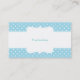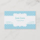 A great business card for any business or occupation. It has a blue stripe on top and bottom with tiny white polka dots. The centre is white with blue text. You customize the text on the front and back.