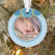 Ce magnifique ornement photo de bébé est composé de pois bleus et de roses bleus, ce qui est parfait pour le premier ornement photo de Noël d'un bébé garçon. Personnalisez-le en remplaçant le texte de l'espace réservé et en remplaçant l'exemple/l'espace réservé par votre propre photo. Pour plus d'options, cliquez sur le bouton "Customiser". Photographie d'espace © Storytree Studios, Stanford, CA *Veuillez noter que le filigrane Zazzle qui apparaît dans l'aperçu du zoom n'apparaîtra PAS sur le produit imprimé final. © Bois de rose et agrumes
