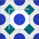 Blue polka dots and green squares
