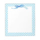 5.5” x 6” customizable notepad with an image of blue polka dots on white, a white writing space, and blue bow detail. See matching notebook. See the entire Kidz Korner Notepad collection under the OFFICE category in the KIDZ KORNER section.