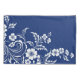 A sophisticated floral design with white ornamental flowers and swirls over a deep royal blue background. Inspired by classic porcelain patterns, this design blends timeless charm with bold contrast for a modern decorative look.