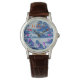 I like the illustrative watch with the lady on it. It is a great reminder that I am blessed and it has a very sturdy leather band. The colors are true and vibrant. Love the color of the Leather also. Very nice.