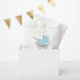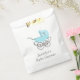 Sweet baby shower favour bag with a graphics of an old fashioned turquoise blue baby pram. Personalize the grey custom text for your baby shower event. Great for all your party favour needs.