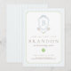 Celebrate your baby boy’s first birthday in sporty preppy style! This blue tennis invitation features watercolor rackets, a personalized crest, and timeless design—ideal for a charming “first match” party.