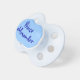 This personalized custom pacifier for baby boys says "Prince Alexander." It's darker letters on a blue background.