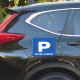 Blue private parking icon custom front vinyl sticker. Create your own road signage for drivers. Use for Private Property, No Trespassing and more. Handy notice for private property car park, secure parking, school, shop, store, office centre, restaurant, corporate company, mall, wedding event, entrance, business, warehouse, airport, garage, storage facility, hospital, hotel, public building, zoo, sports field, grass, garden, park, walkway etc. Make custom signs for employees, staff, personnel, clients, visitors, guests, drivers, walkers, violators etc. Blue square symbol with letter P.