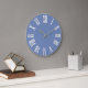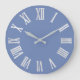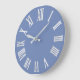 Blue Pstel Grey Metallic Silver Roman Numbers Large Clock