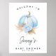 Blue Pumpkin Boho Floral Boys Baby Shower Welcome Poster