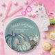 Personalized Custom "Grateful & Blessed Dusty Blue Watercolor Pumpkin Fall Autumn Party Decoration: paper plate. Perfect for any fall party and perfect for Thanksgiving.