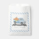 This cute vintage, and rustic boy's baby shower favour bag features a white background with baby blue gingham checks and a blue truck filled with pumpkins and flowers. Personalize for your needs. You can find more matching products at my store.