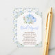 This cute and whimsical watercolor book request enclosure card features pastel blue pumpkins and beautiful floral arrangements. The text combines handwritten script and sans serif fonts for a stylish and modern look. This is perfect for an autumn fall baby shower.