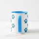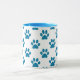 Coffee mug with blue puppy paws print on white background. Perfect gift for the animal lover.