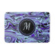Blue Purple Abstract Watercolor Modern Monogram Bath Mat