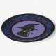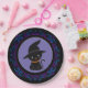 Blue Purple Black Cat With A Witch Hat Halloween Paper Plate