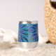 Une fleur d'imaginaire moderne abstraite et unique aux tons bleu et violet. Conception pour votre cave à vin et plus encore.