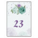 blue purple flowers greenery botanical table number