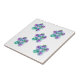 Hand-made sewn Blue, purple, green flowers from fabric with light purple pearl on the middle of flower on Ceramic Photo Tile for kitchen and home decor. *Every things you see on the products are hand made, but you must know that you get a photo!