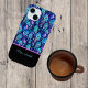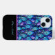 Blue Purple Peacock Feathers on Black Monogram Case-Mate iPhone Case