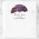 Birthday thank you stickers with an abstract design with blue and purple layers with faux gold foil ribbons in between.