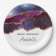 Blue & Purple Space & Stars Modern Agate Birthday Paper Plate