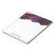 A notepad with an abstract design with blue and purple layers with faux gold foil ribbons in between. Personalized name along the bottom.