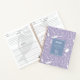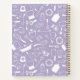 Purple recipe book printed with a hand drawn pattern of kitchenware and cooking utensils. Charming recipe book in purple, blue and white personalized with your name. A pattern of doodles pots and pans, whisks and kitchen scales, cutting boards and cheese graters, plates and knives and more.