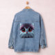 Rencontrez l'enchanteur Blue-Purplish-Catty, un personnage captivant qui combine des teintes mystérieuses avec un éclat radiant. Imprimé audacieusement à l'arrière de la veste Denim Blue-Purplish-Catty (Edit), cet adorable félin dégage une aura de curiosité et d'émerveillement. Sa fourrure est un mélange fascinant de tons bleutés et violets, tourbillonnant sans heurts l'un dans l'autre comme un ciel crépusculaire. Accentué par des reflets orangés et chatoyants qui semblent scintillants et brillants, les yeux surdimensionnés et lumineux du chat regardent vers le haut, comme si l’on regardait une étoile lointaine ou rêvait de nouvelles aventures au-delà de l’horizon. Les grands yeux expressifs évoquent un sentiment d'innocence mêlé à un soupçon de sagesse, ce qui rend impossible de regarder ailleurs