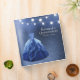 Elegant and beautiful Quinceanera princess dress for the birthday girl's photos. White string lights above on a dark blue, glitter background.